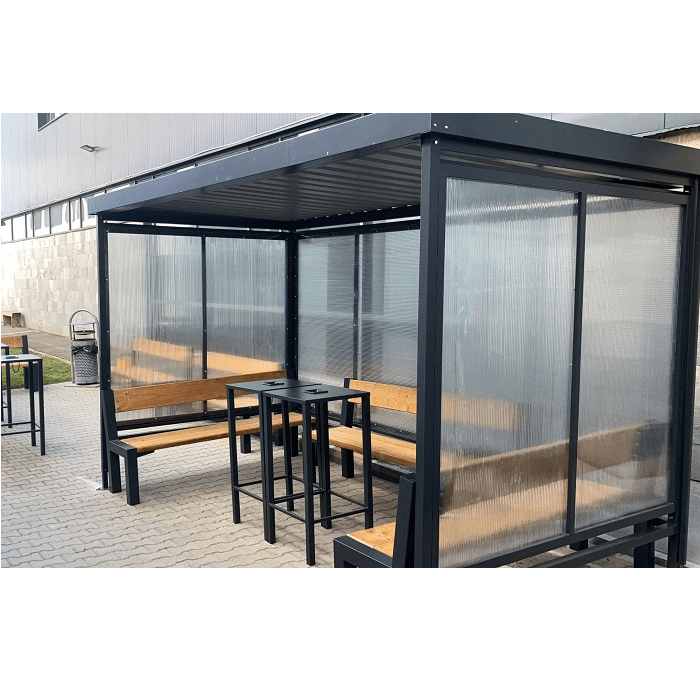The AFE11 Smoking Shelter is designed to provide a dedicated and protected space for smokers, offering an efficient and aesthetic solution for various public or private locations. Built from high-quality materials, this shelter ensures durability and resistance in all weather conditions.