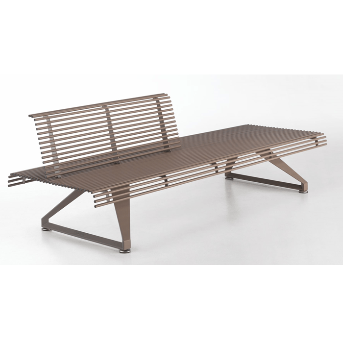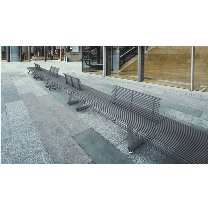 Urban rest bench with an attractive design, made entirely of steel and electrostatically coated. We manufacture street rest benches with a metal seat and an angled backrest, featuring a robust structure that can be fixed to the ground. These benches can be installed on pedestrian walkways, in shopping centers, or gardens. They are visually pleasing pieces of furniture that can integrate into any urban landscape, thanks to the wide range of colors available. All our rest benches are made in Romania, with immediate delivery from stock or custom orders.