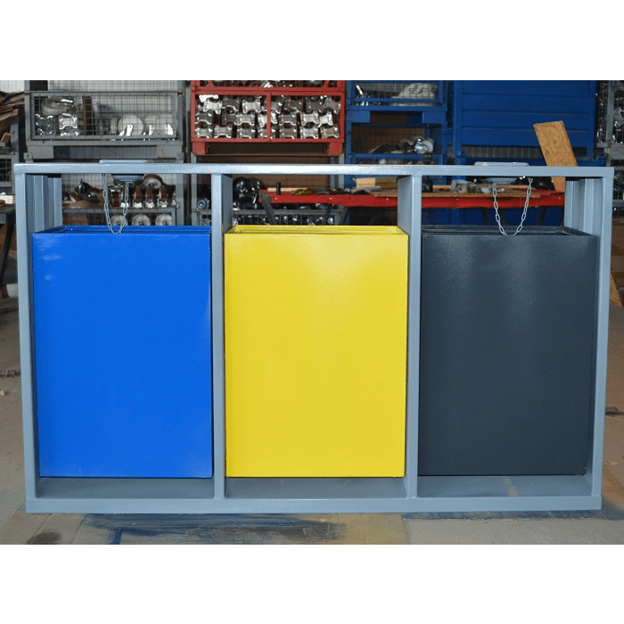 This selective collection street waste bin is the ideal solution for efficient waste management in public spaces. With a generous volume of 3×60 liters and compact dimensions, this bin is designed to meet the intense demands of areas with high pedestrian traffic.