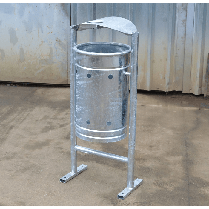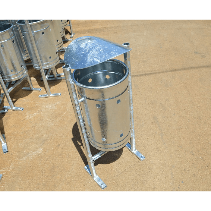 This cylindrical street trash bin, with a 50-liter capacity, is designed to provide an efficient and durable waste management solution for public spaces. Made from high-quality metal, this trash bin is ideal for maintaining cleanliness and order in cities, parks, commercial areas, and other locations.