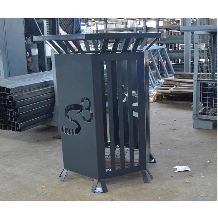 This waste bin is crafted from durable 3mm steel, precision cut using CNC plasma technology. The advanced production method ensures enhanced strength and durability of the product.