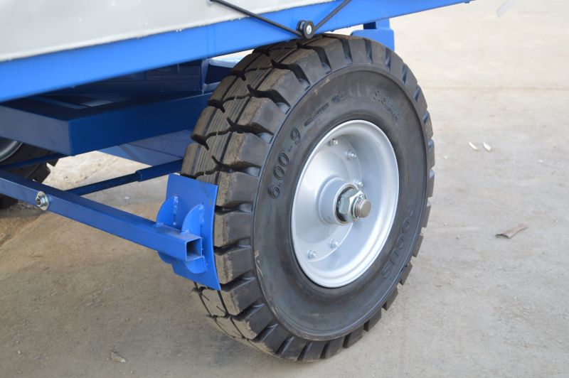 - Wheels: Both axles are equipped with wheels with a diameter of 300 mm, steel rims and precision bearings, and the tire is made of hard rubber.