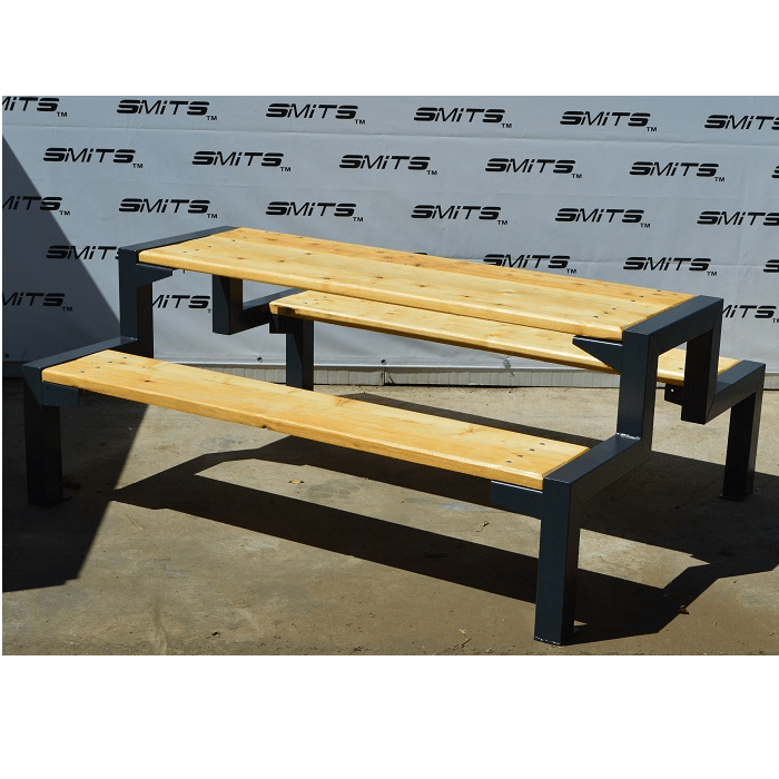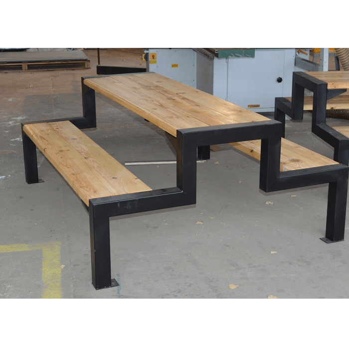 Transform any outdoor space into a comfortable and welcoming place with the outdoor table with two benches. This robust and elegant set is designed to offer maximum functionality and durability, making it ideal for use in public spaces.