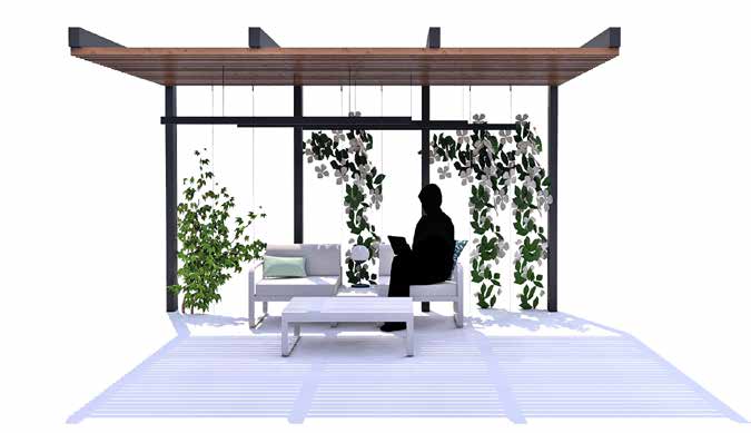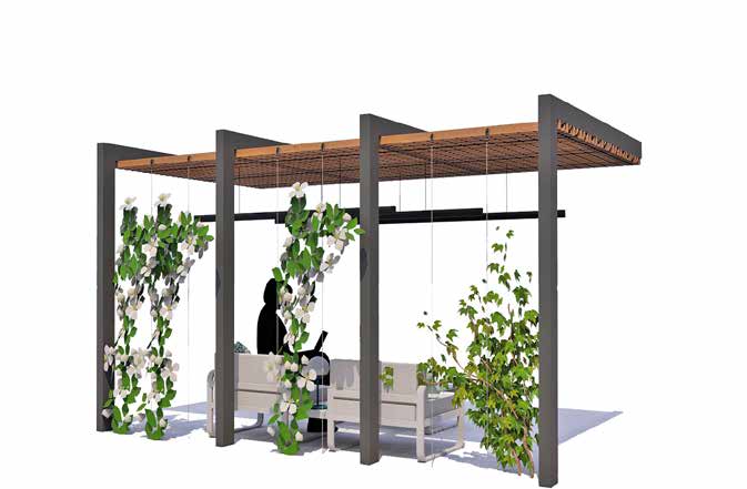 As seen in the presentation images, these elegant pergolas can shelter relaxation areas in a natural environment, thanks to the ability to integrate ornamental plants into the structure.