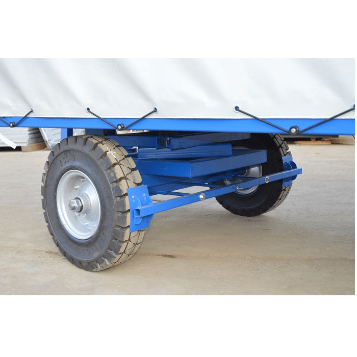 This industrial trailer is designed to safely and efficiently transport heavy loads, making it suitable for a variety of industrial applications.