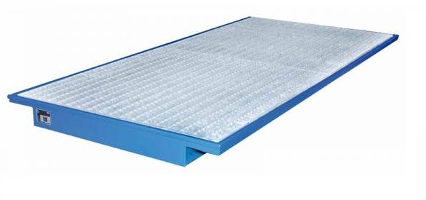 SMITS offers Standard or custom-built spill tray for the safe indoor storage of hazardous and flammable liquids. Designed for industrial use, these spill trays provide a robust, leak-proof solution for storing all type of containers for chemicals, ensuring compliance with EPA, SPCC, NPDES, and UFC environmental regulations. Special drain trays for pallet racks, the drain trays fit perfectly on the rack beams, provide safety and can store up to 4000 kg of load. The trays prevent accidental leaks from containers and have a storage capacity of 350 l. The body of the tank is made of 3 mm stamped steel and welded together, the seal is tested at the factory, the loading surface is made of industrial metal grill that can be detached for tank maintenance.