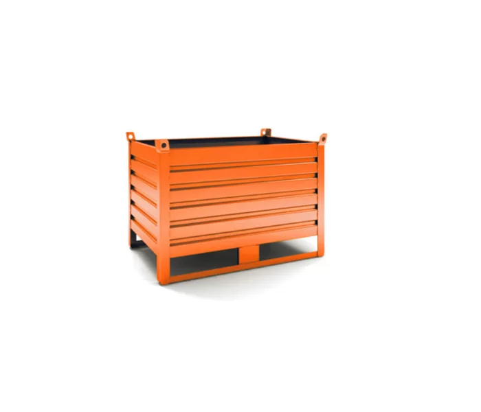 Our stackable steel containers are built with standardized dimensions and crafted for industrial use. Constructed from high-quality embossed sheet metal, these robust containers are available in sizes starting from 800 x 600 x 670 mm and come equipped with a convenient side shutter. Designed to meet the most diverse industrial needs, our containers offer unmatched durability, versatility, and efficiency.:
